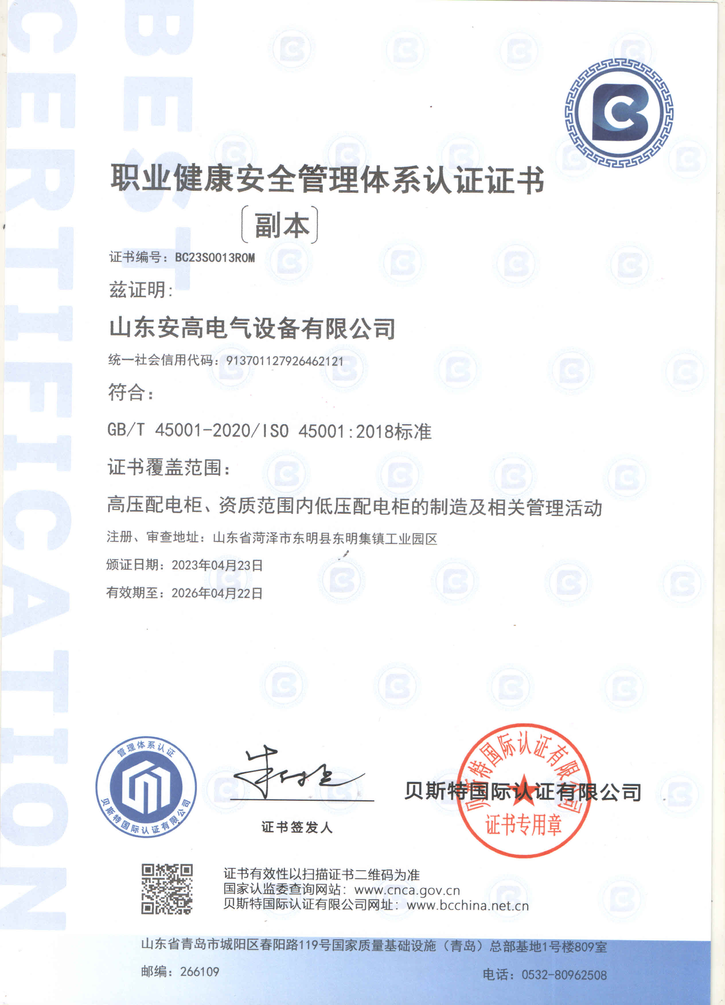 安高經(jīng)過了多年磨練,先后榮獲“守合同重信用企業(yè)”、“專精特新”中小企業(yè)、“質(zhì)量、服務(wù)、信譽(yù)AAA企業(yè)”、“國家合格評定質(zhì)量信得過產(chǎn)品”、“山東省高新技術(shù)企事業(yè)”等多項榮譽(yù)稱號。